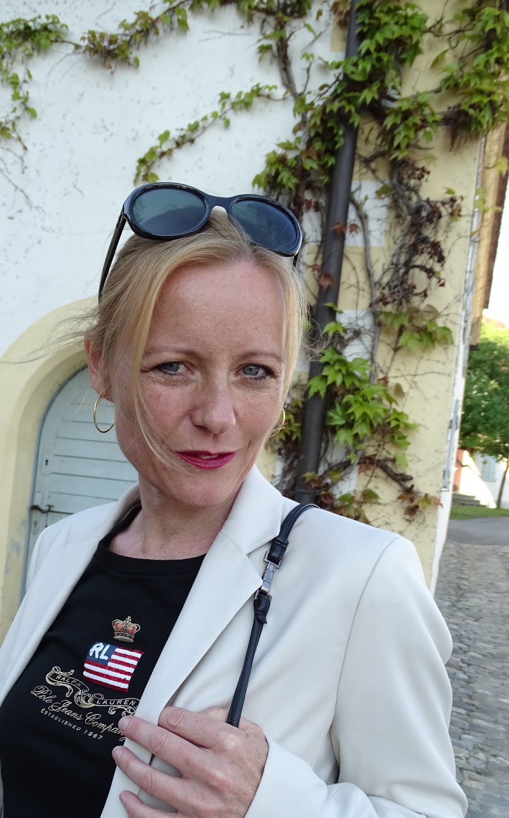 Schwarze Lederleggings Zum Hellen Blazer Am Schloss Salem